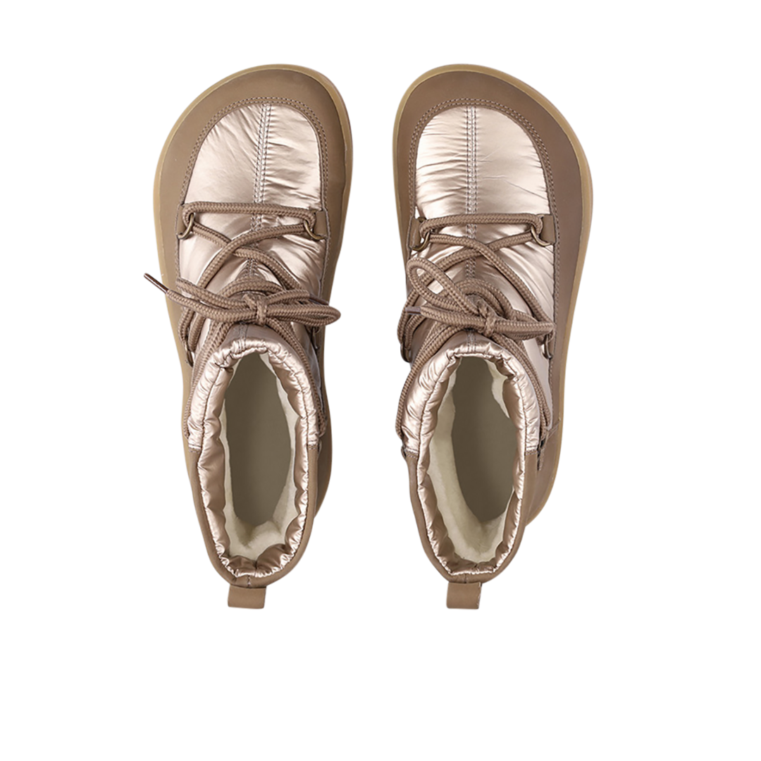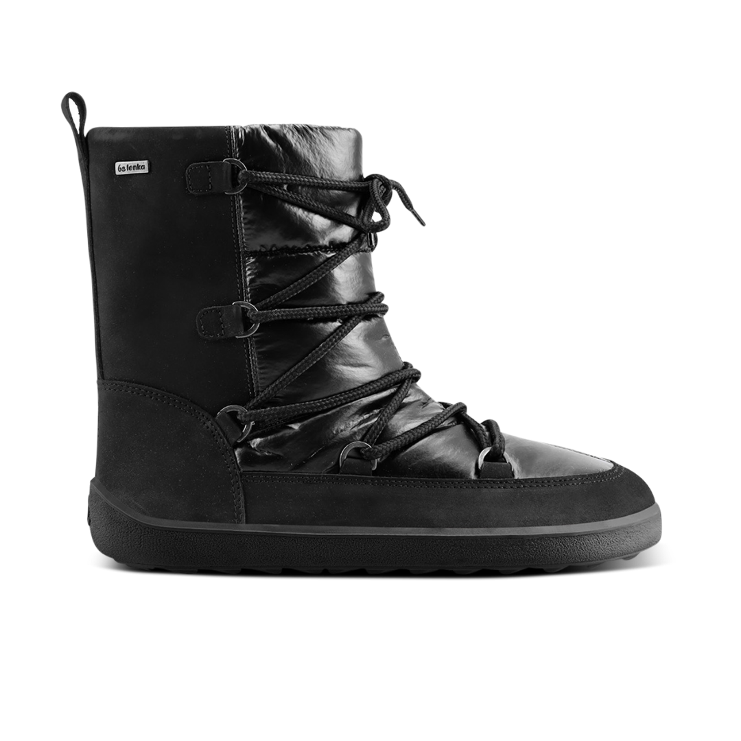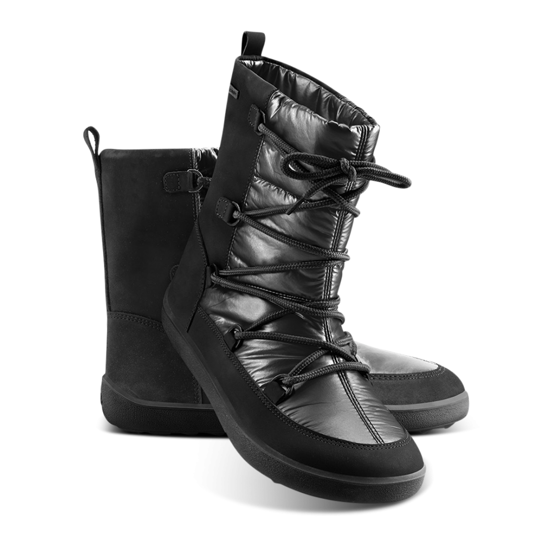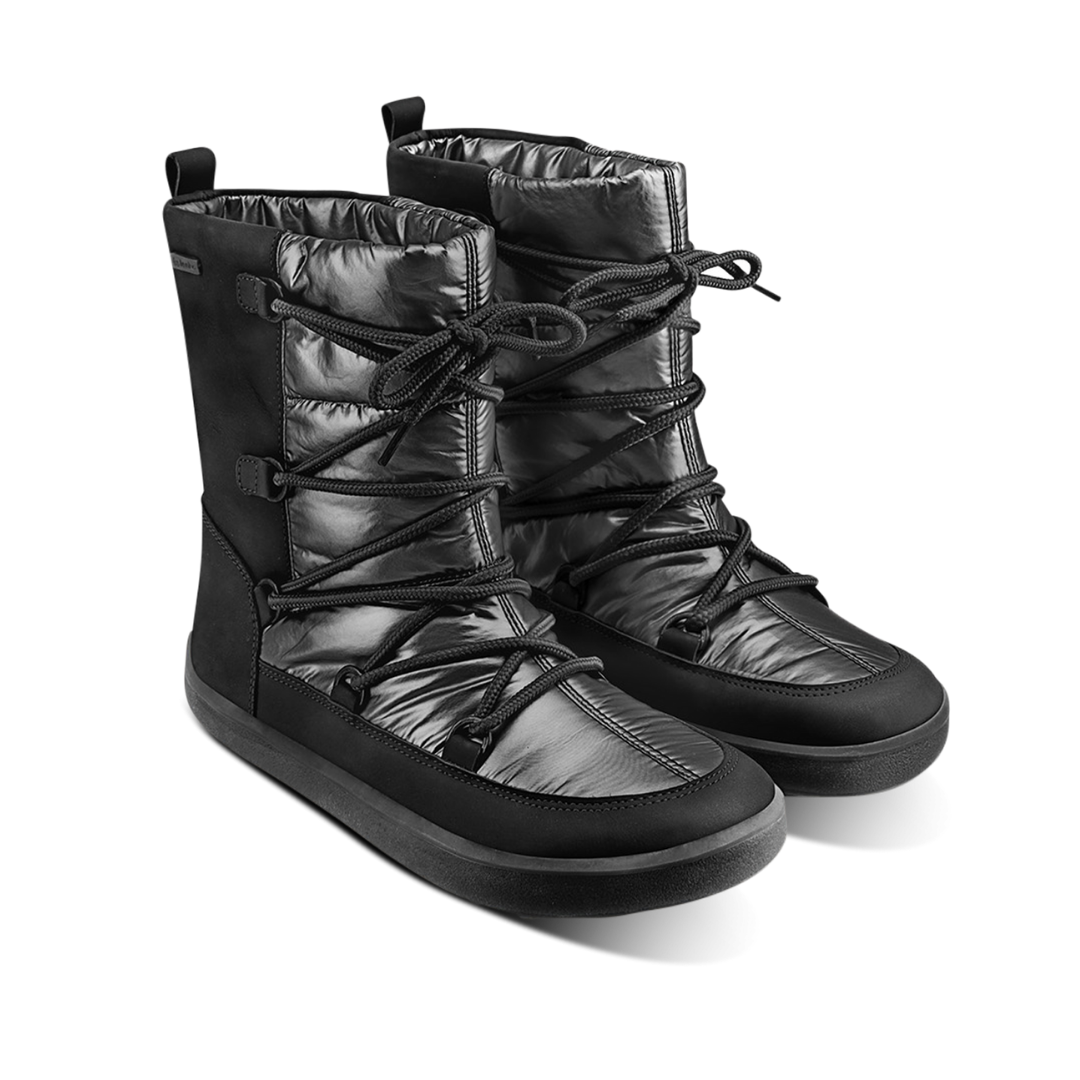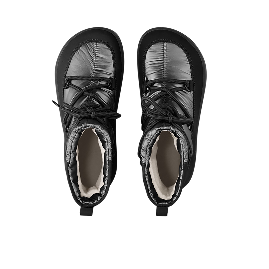 Die Snowfox Barfußschuhe verbinden edles Design mit optimalem Wärmeschutz. Das glänzende Obermaterial in Kombination mit hochwertigem Leder und dem dezenten Be Lenka-Logo verleiht den Schuhen eine luxuriöse Note.