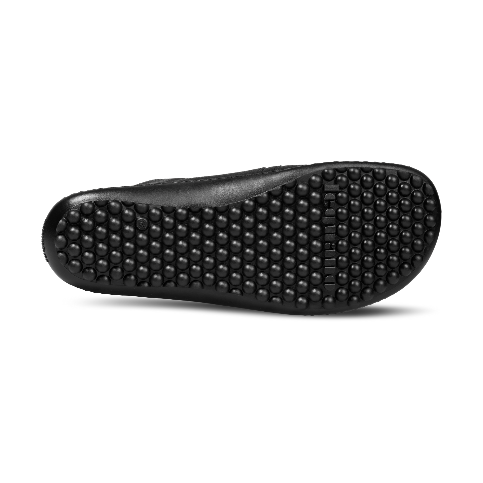 Der leguano Neron überzeugt mit einer großen, flexibel einstellbaren Schnalle, die ein schnelles An- und Ausziehen ermöglicht und gleichzeitig ein markantes Design-Statement setzt. Wie alle leguano-Modelle bietet er ein intensives Barfußgefühl: Handgenähte, bewegliche Materialien passen sich dem Fuß perfekt an und unterstützen einen gesunden Bewegungsablauf.