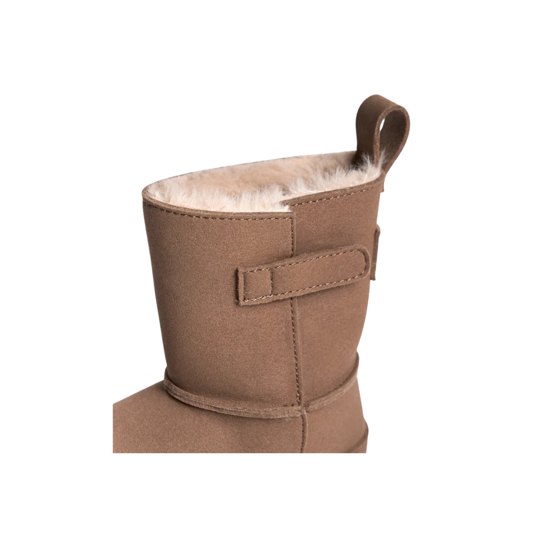Mit seinem hohen, schützenden Schaft gibt er Halt, ohne deine Bewegungsfreiheit einzuschränken. Das weiche Innenfutter aus Fell speichert Wärme, während die flexible Sohle und die breite Zehenbox die natürliche Bewegung deiner Füße unterstützen.
